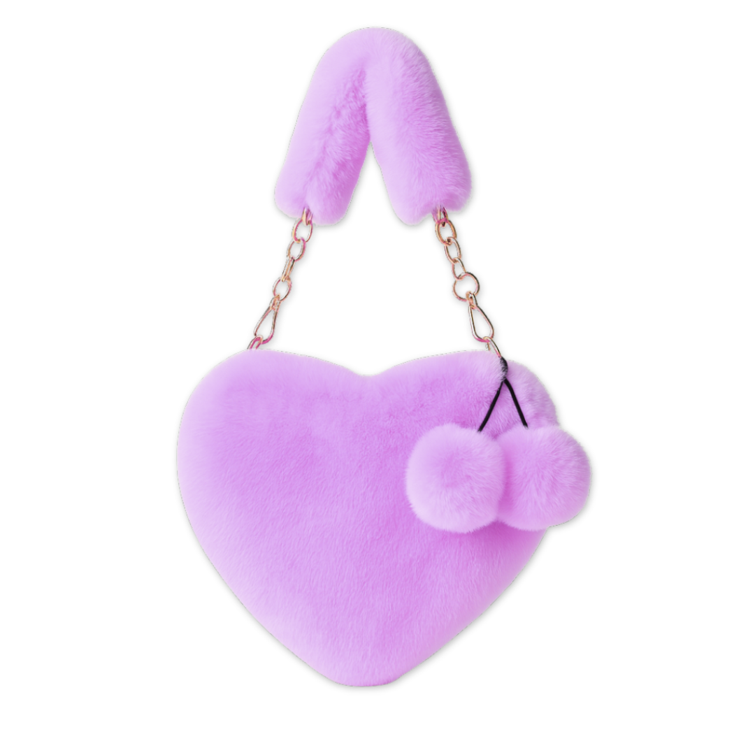This delightful purple floofy heart shaped purse, makes the perfect accessory for any aspiring little fashion queen.