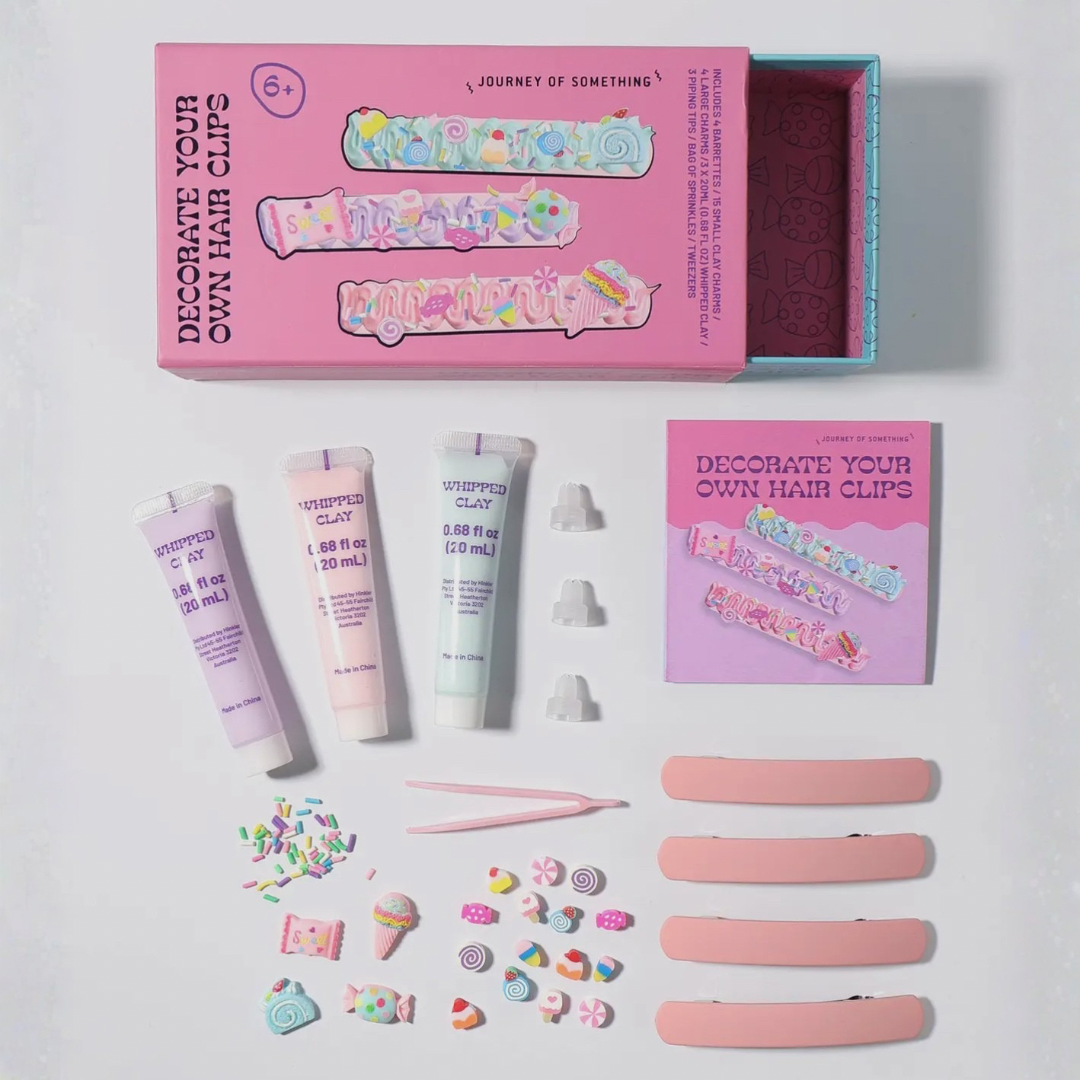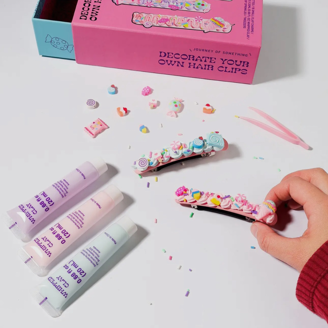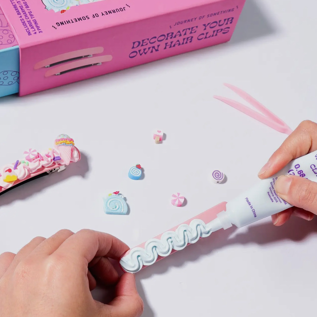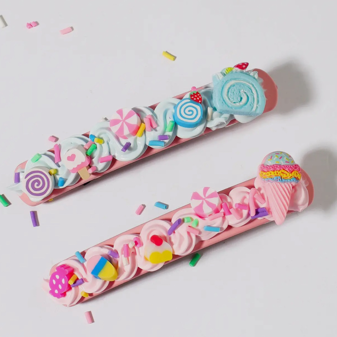 Add charms and sprinkles to make delicious hair clips. Mix, match and make it sweet.