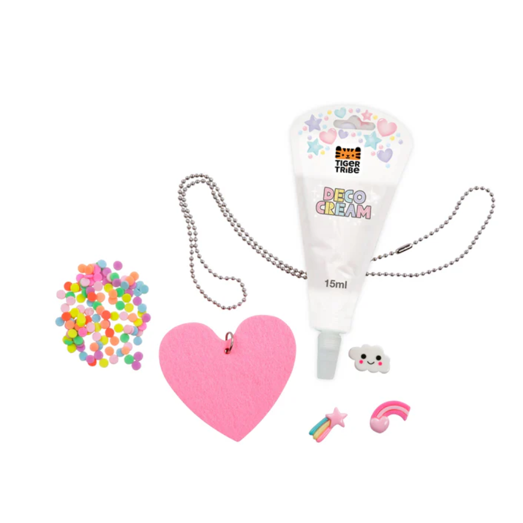 Get creative with our ‘good-enough to-eat’ Heart Necklace. Simply ‘ice’ the felt heart with the frosting-like white Deco Cream and bling out the finished product using the super sweet rainbow and cloud charms, and coloured sprinkles.
