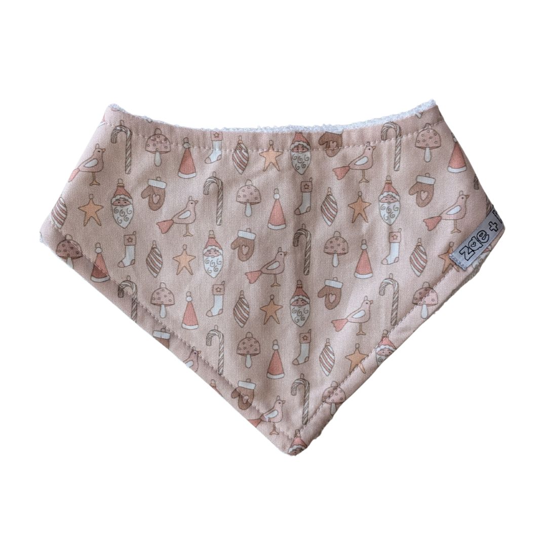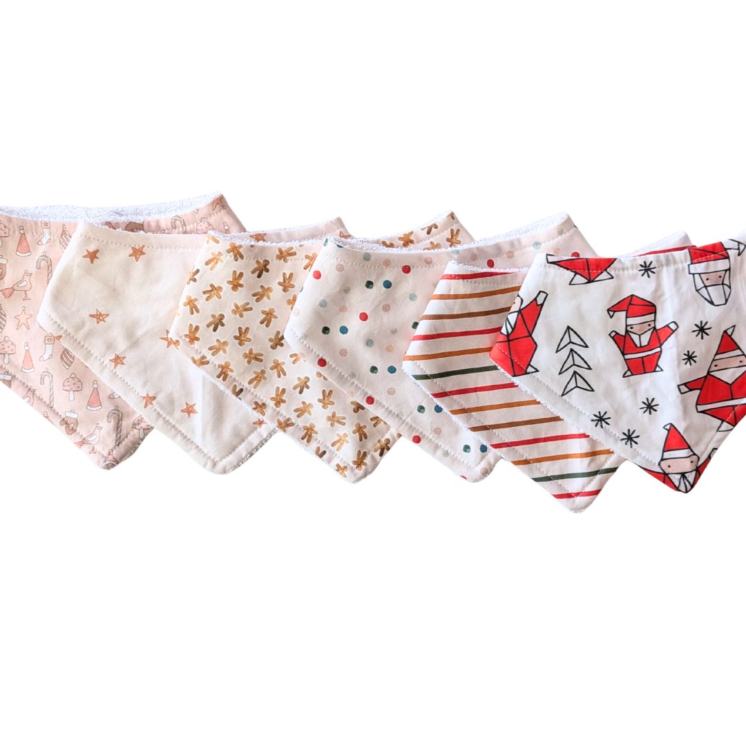Keep mealtimes merry with this adorable Christmas Dribble Bib! Featuring festive holiday patterns on soft cotton, it's designed to handle all the seasonal spills and splashes. The absorbent towel backing protects clothing while the convenient double-button closure ensures a secure, comfortable fit for your little one. A cheerful essential that makes feeding time feel extra festive!