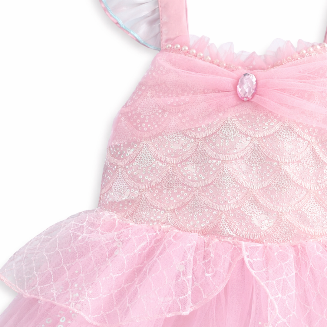 Transform your little one into a Magical Mermaid Dream with Pickwick & Sprout's Ocean inspired Princess Gown. This double tulle puffy princess dress allows for creative and imaginative role play, perfect for playtime or costume parties.
