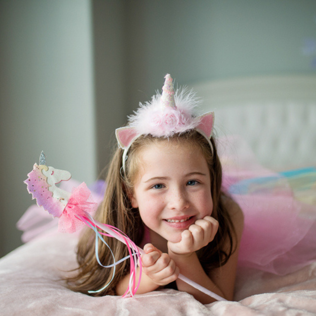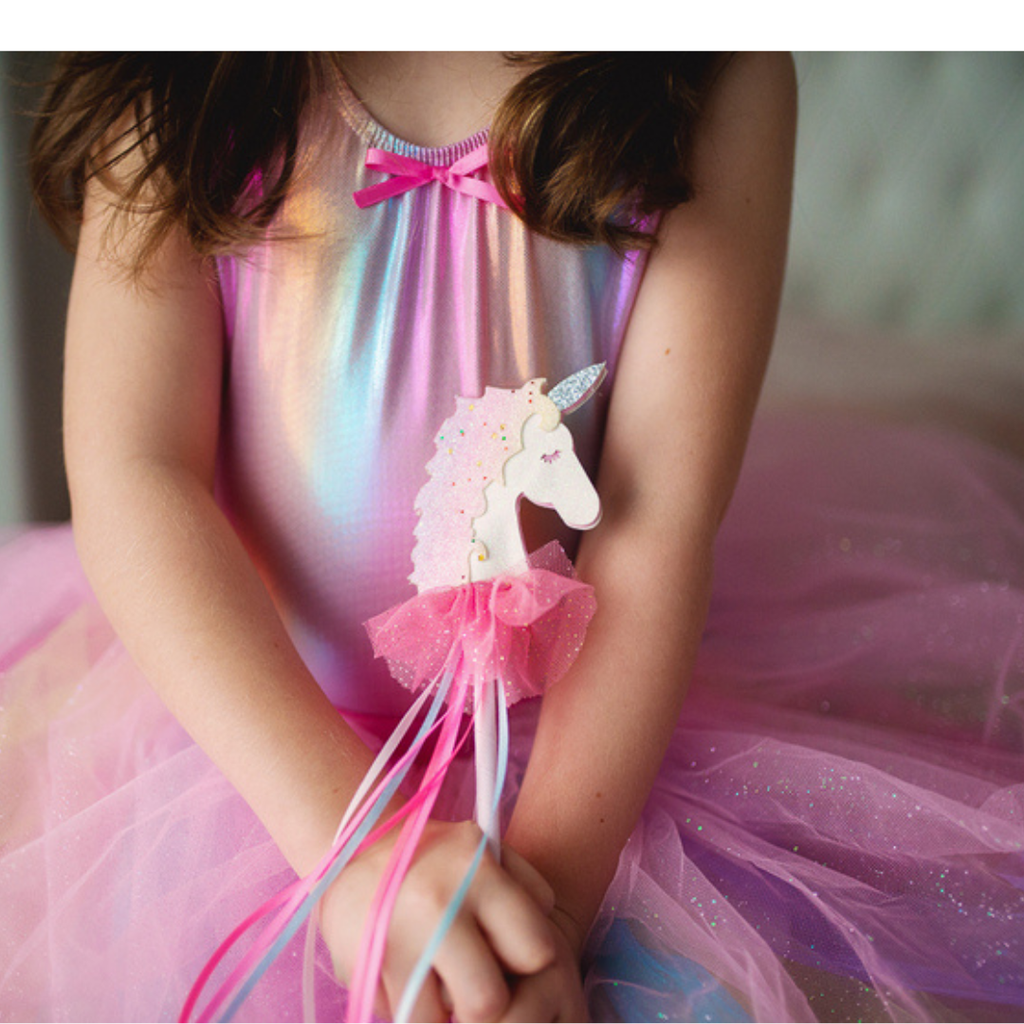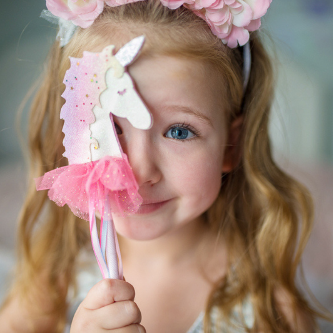 Introducing the Unicorn Wand - a delightful accessory that will add a touch of magic to your child's playtime! This beautiful wand comes with a sparkling pink mane that shines in the light, making each wave more magical.