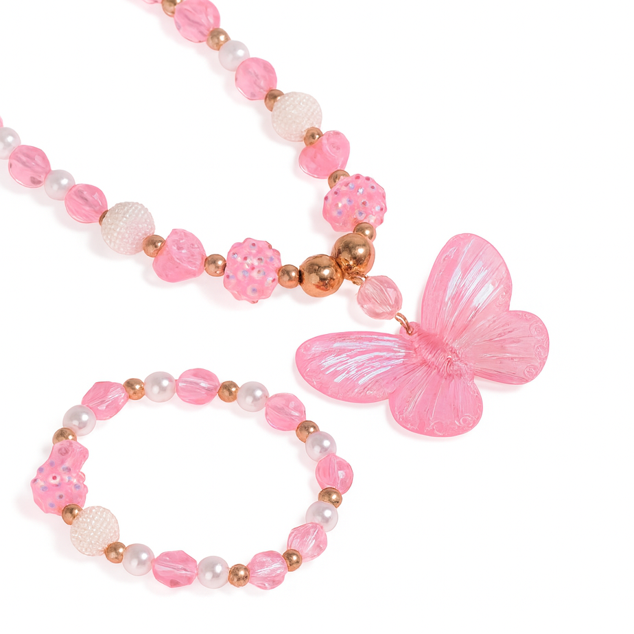 Add some sparkle to your little one's outfit with this playful necklace and bracelet set from Pickwick & Sprout! Featuring a sparkly butterfly design and stretchy elastic for comfortable wear, this mermaid and ocean themed set is perfect for dress up play and accessorising.