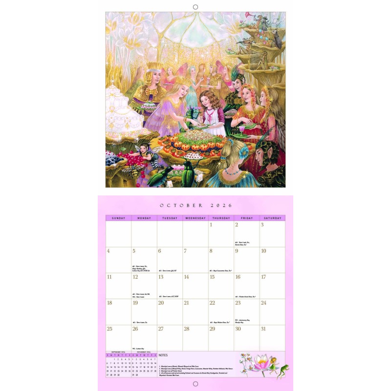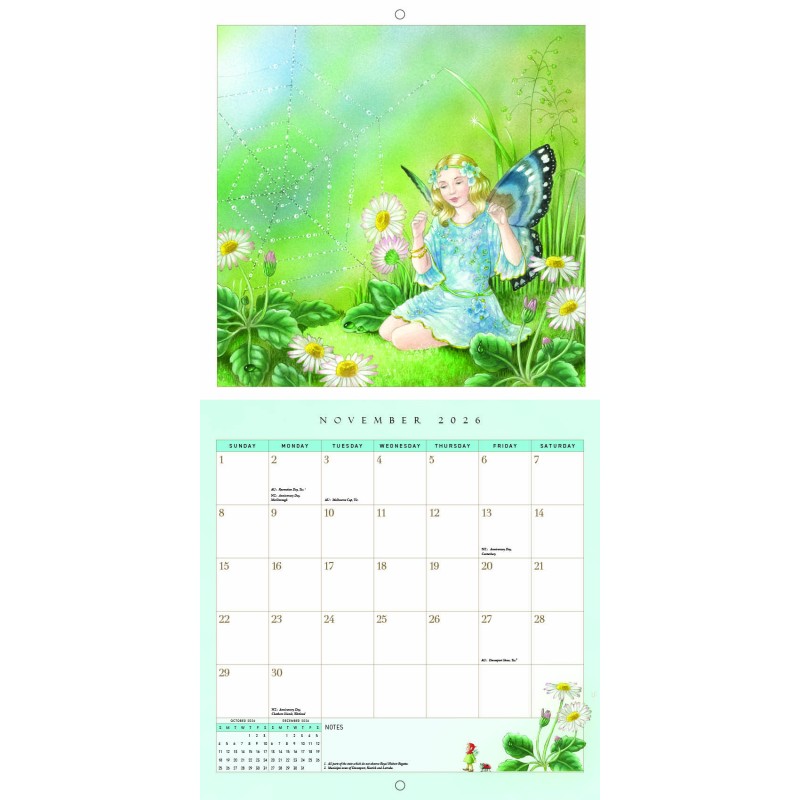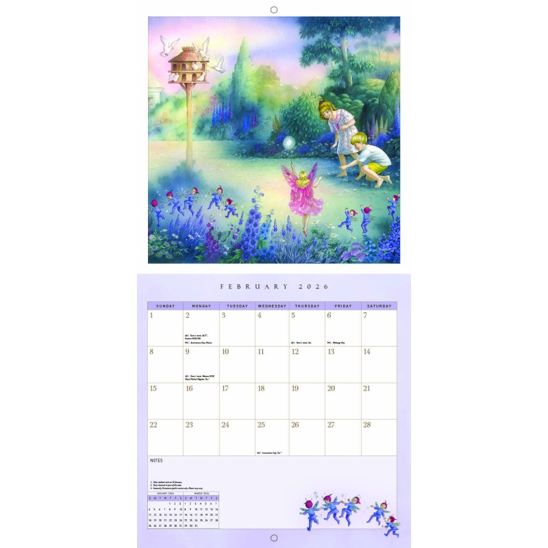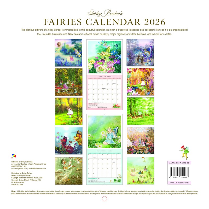 A glorious calendar featuring 12 beautiful fairy paintings by Shirley Barber, large date blocks, and school and public holiday dates for Australia and New Zealand.