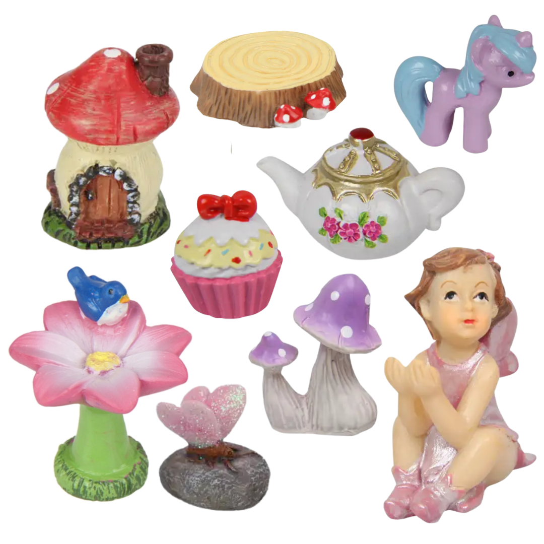 Create a magical fairy sanctuary with this enchanting collection of miniature garden pieces. Crafted from durable resin, each whimsical element lets you design the perfect fairy hideaway. Watch imaginations soar as little ones build their own storybook world, complete with all the charming details fairies dream of.
