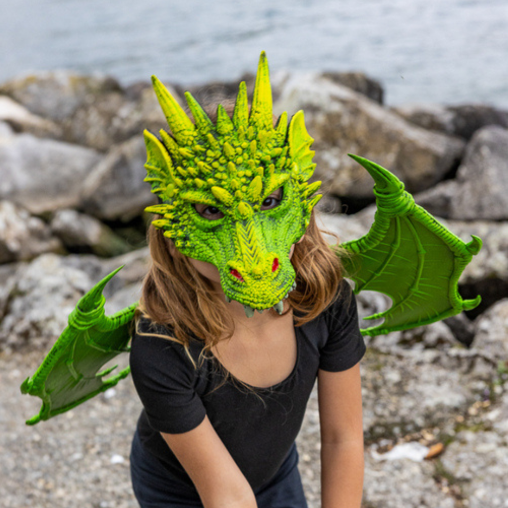 This mask, made of high-quality rubberized foam, is both long-lasting and comfortable. The rubbery texture adds another depth of authenticity to the design, making it seem like genuine dragon scales. The brilliant green colour is eye-catching and can help your youngster stand out in any costume contest or play setting.