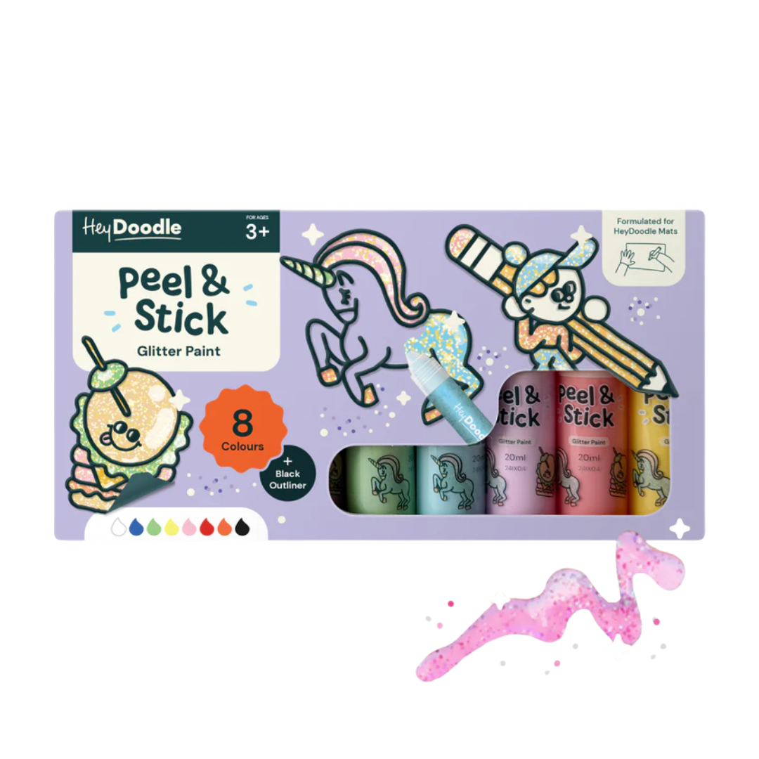 Bring your art to life with a shimmering twist! Our Glitter Peel & Stick Paints make it easy for kids to create sparkly designs that peel off and stick to windows, mirrors, tiles, and more.