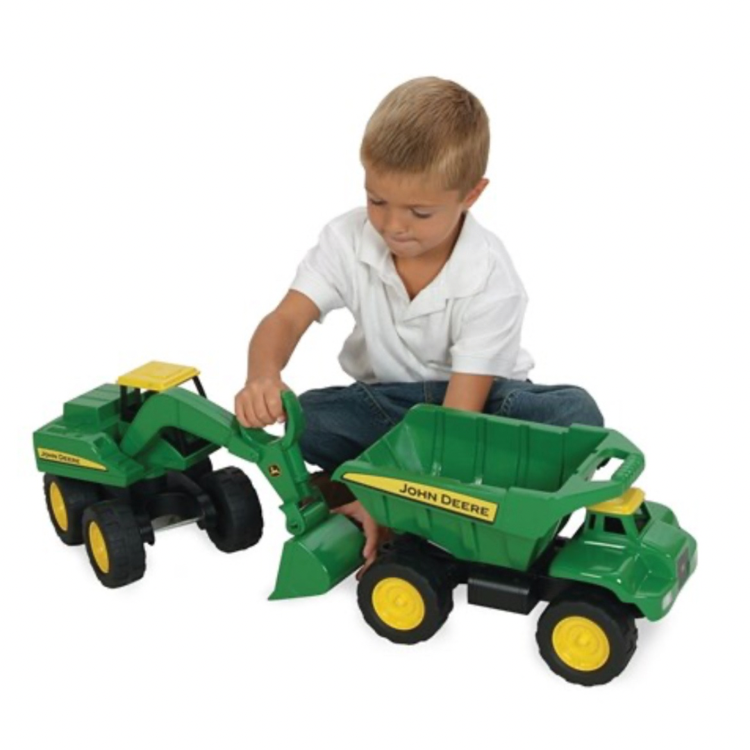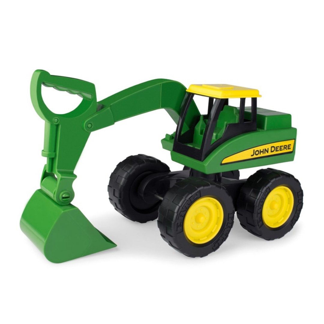 The John Deere Big Scoop 38cm Excavator is sand pit tough and ready for loads of adventure. Fully-functional Excavator Arm is ready for big hauls. This excavator toy features heavy duty plastic construction with free rolling wheels and is the perfect companion with the Big Scoop Dump Truck! (sold separately) Get ready for fun in the sun and sand with Big Scoop!