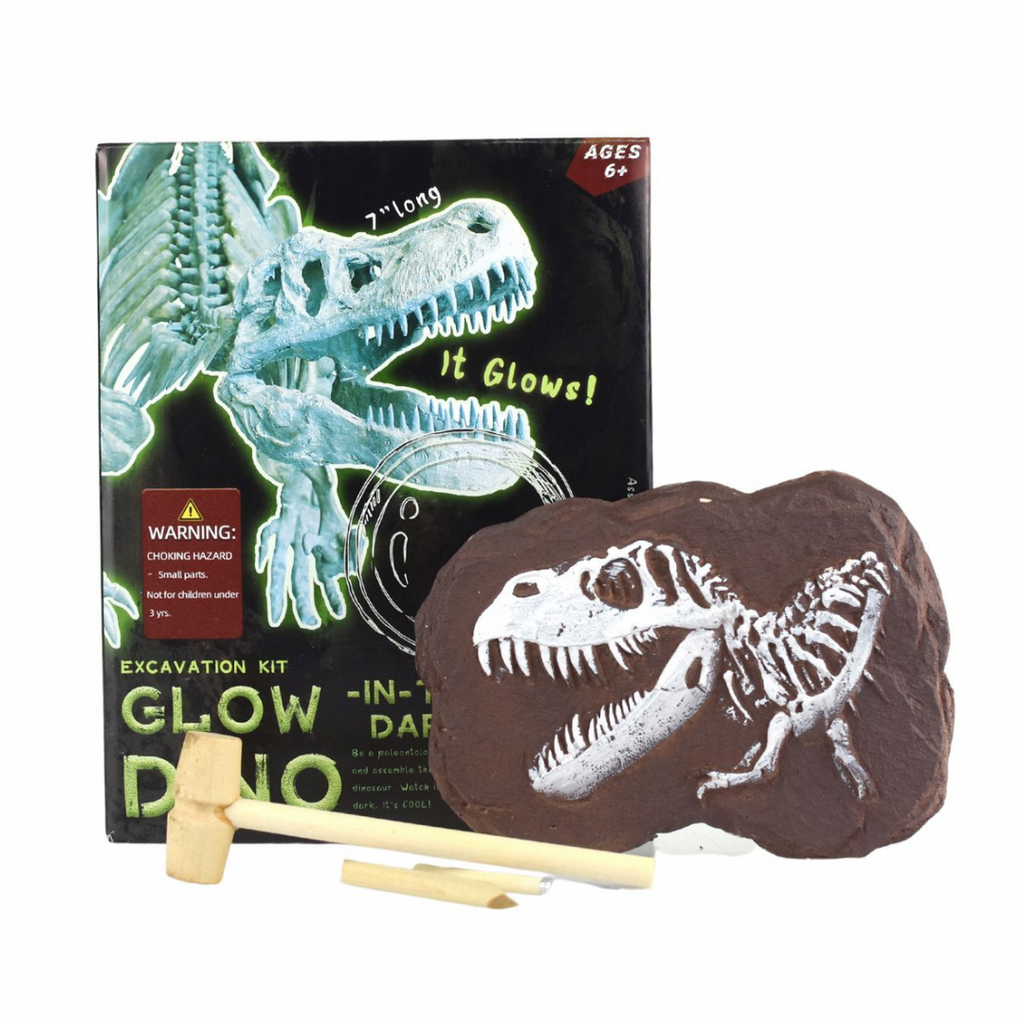 The Glow in the dark Tyrannosaurus Rex Skeleton Excavation Kit from Kaper Kidz is a thrilling activity for young dinosaur enthusiasts. The kit includes a plaster block, digging tools, and magnifying glass to help children excavate and assemble a glow-in-the-dark T-Rex skeleton. As children work to uncover each bone, they will learn about the anatomy of this fearsome dinosaur and its place in history.
