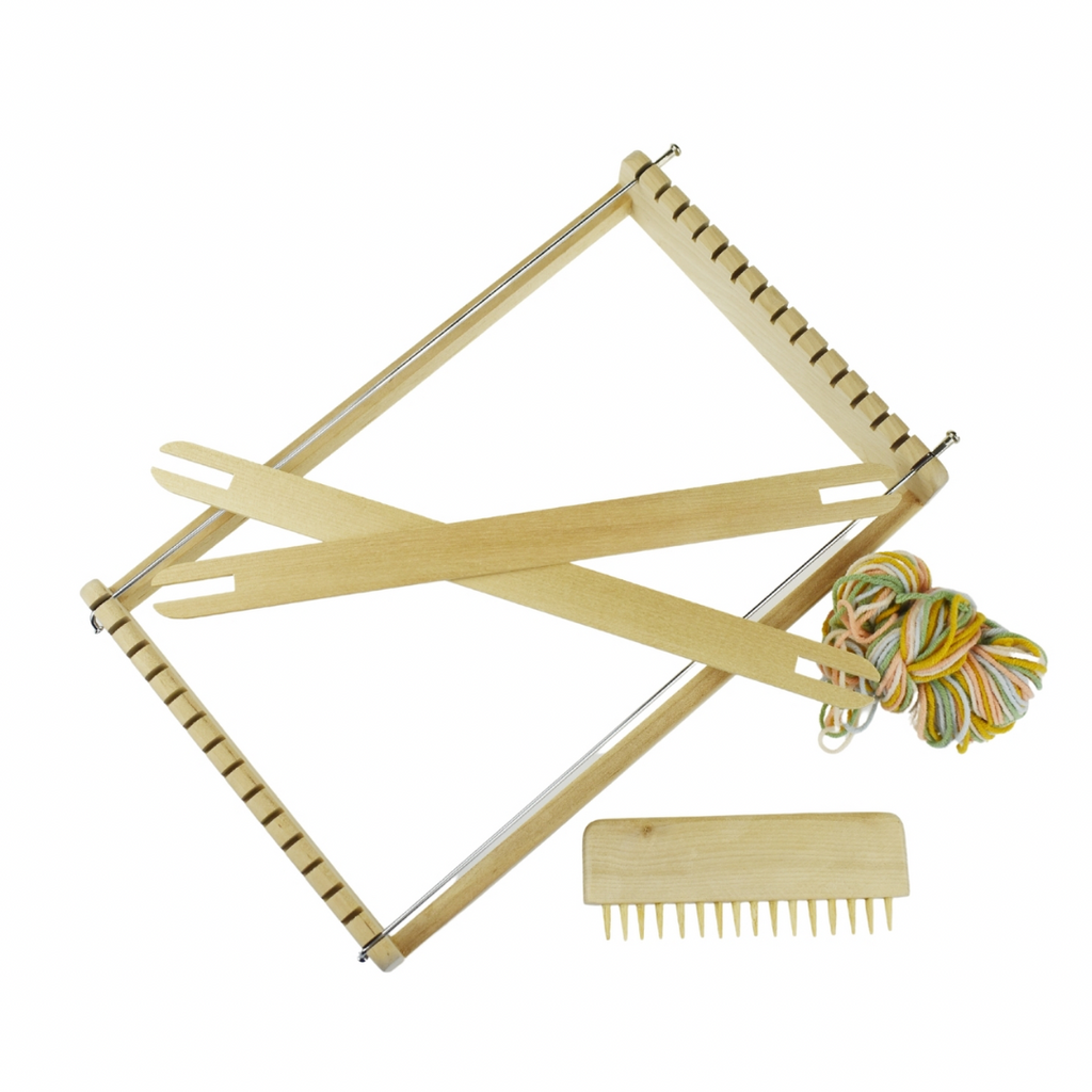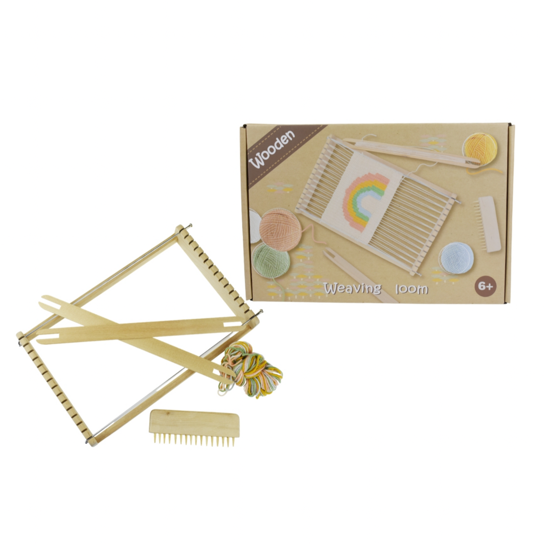 Let your children explore the joy of textile art by weaving their very own art on this weaving loom from Calm and Breezy by Kaper Kidz. This creative craft kit comes with 1 weaving loom frame, 1 comb, 2 loom shuttles, 2 thread spacers and 5 colours of wool thread. This kit also comes with clear instructions of how to warp up your loom, thread your shuttles and start weaving.