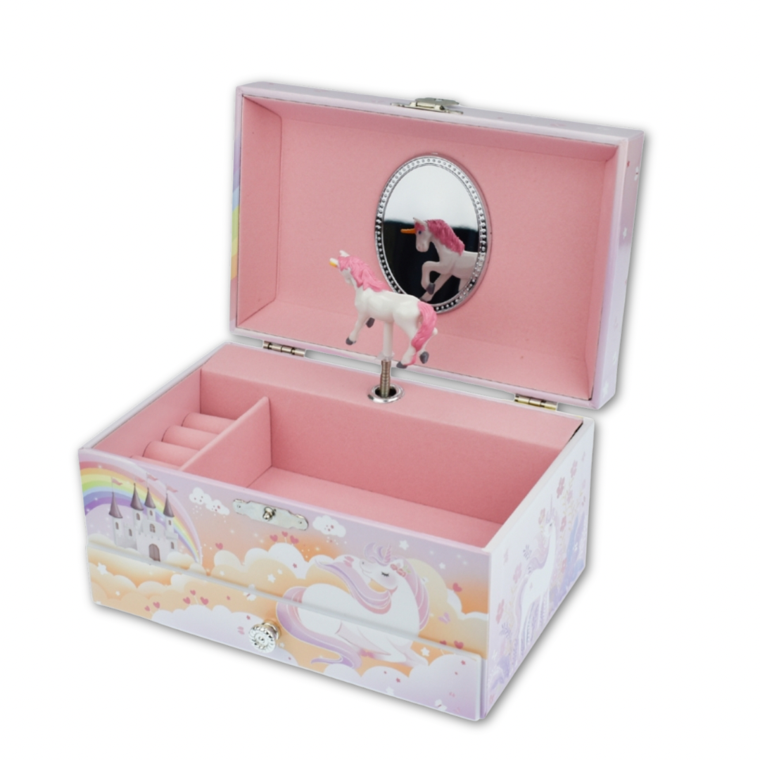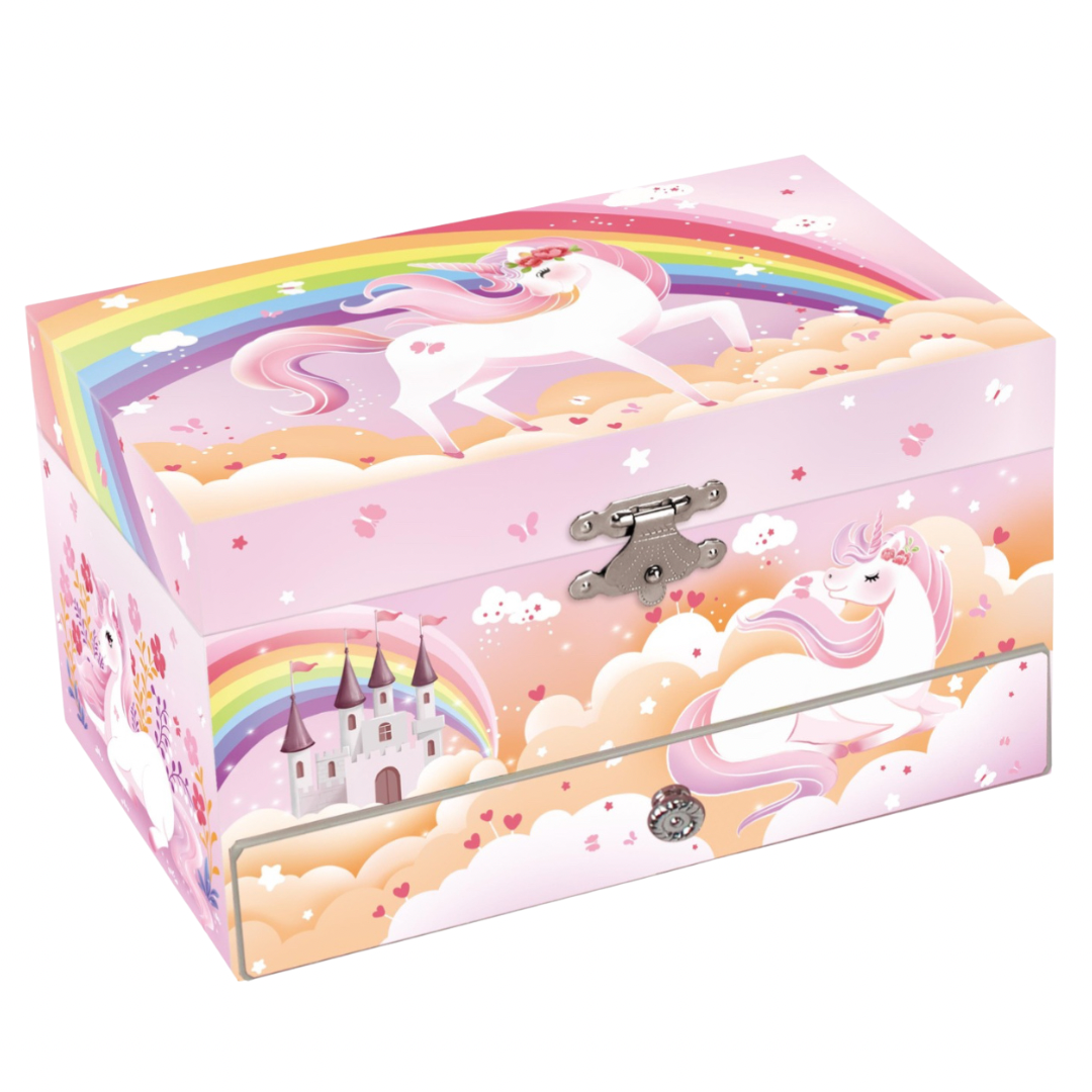 Experience rainbow dreams and fairytales with the Rainbow Unicorn Heirloom Music Box from Kaper Kidz. A whimsical treasure chest adorned with enchanting illustrations and a twinkling unicorn figurine, this box is perfect for storing and showcasing all your special treasures.