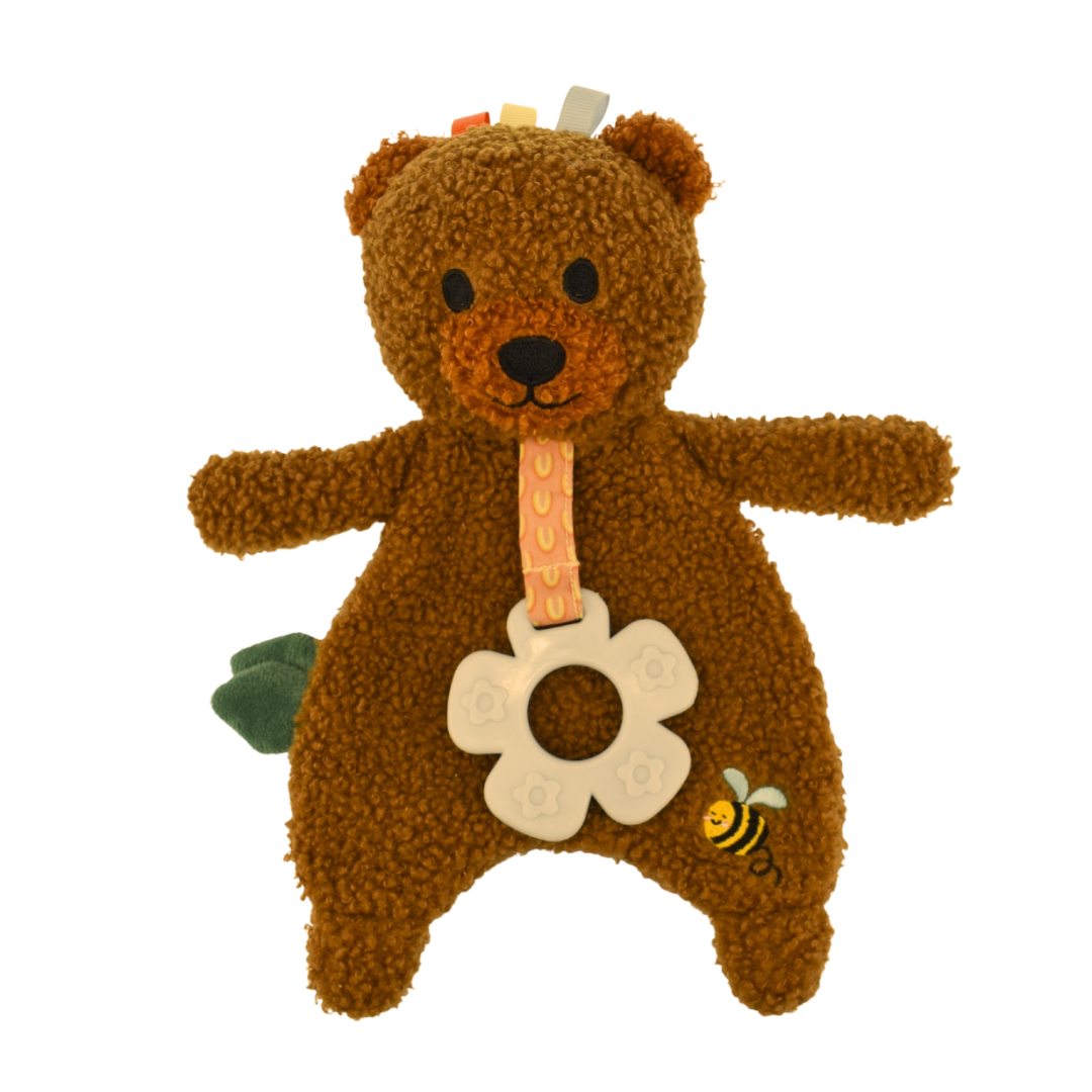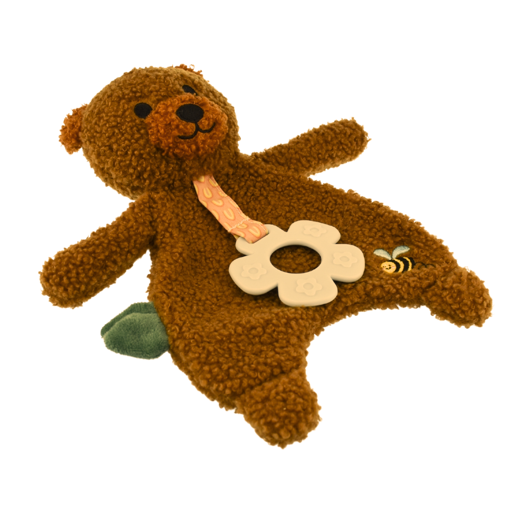 Introducing the Koala Dream Snuggle Buddy Maple Bear Soft Snuggler, a cuddly companion standing at a cozy 20cm high. Crafted from irresistibly soft fuzzy material, this plush bear is designed to provide hours of snuggly comfort for your little one. Equipped with a teether attached, it offers both soothing relief and cuddles during teething moments.
