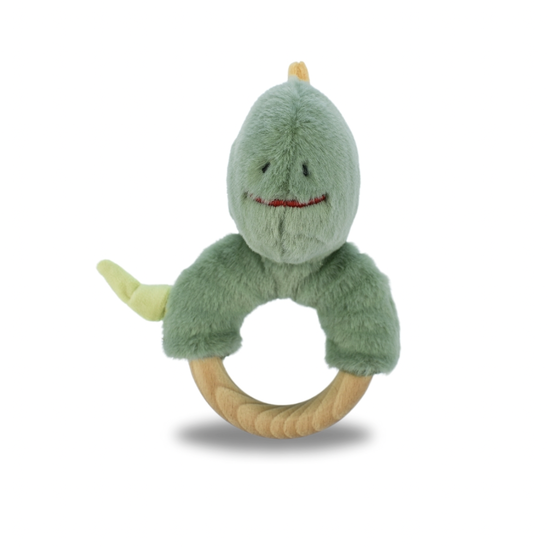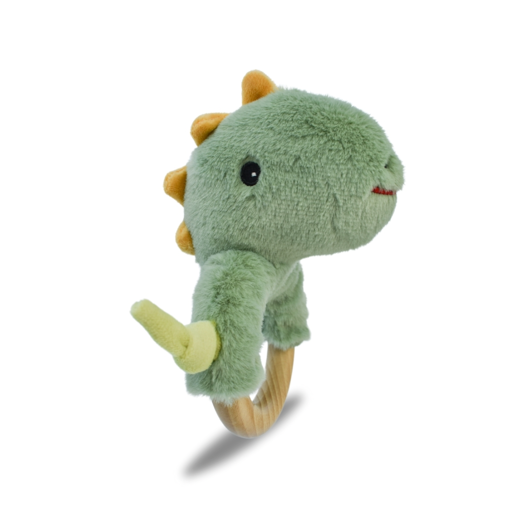 Indulge your little one in the delightful companionship of Koala Dream's Snuggle Buddy Minty Dinosaur Wooden Ring Rattle. Crafted with tender care, this cuddly buddy boasts a soft, plush exterior, ensuring gentle snuggles and endless comfort for your baby. made with soft polyester and designed to captivate your childs imagination, the adorable dinosaur adds an extra touch of charm to playtime.