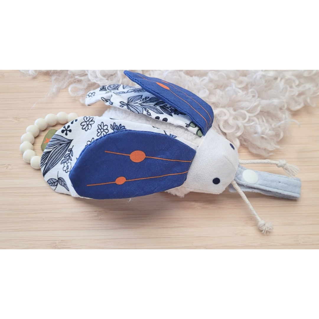 Meet Banjo Beatle, your little one's new best friend! This delightful Snuggle Pal combines comfort and sensory exploration in one adorable package. Crafted from soft, touchable fabric, Banjo invites endless cuddles and snuggles from birth onwards. Designed with curious minds in mind, Banjo features crinkly wings that create delightful sounds during playtime, encouraging auditory discovery.