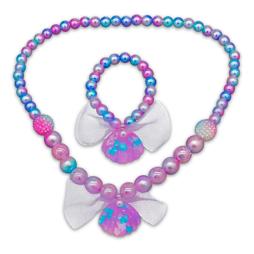 Add some sparkle to your little one's outfit with this playful necklace from Pickwick & Sprout! Featuring a sparkly clam shell design and stretchy elastic for comfortable wear, this mermaid and ocean themed set is perfect for dress up play and accessorising.