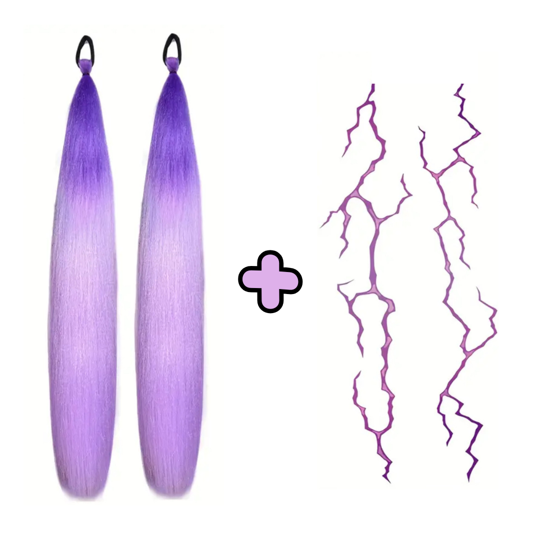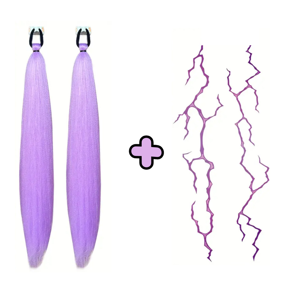Get ready to slay with Pickwick & Sprout's K-Pop Combo! This set includes 2 x 66cm Rumi inspired hair extensions and 1 x sheet of Demon Strip Temporary Tattoos, perfect for channeling your inner K-Pop Star & Demon Hunter.