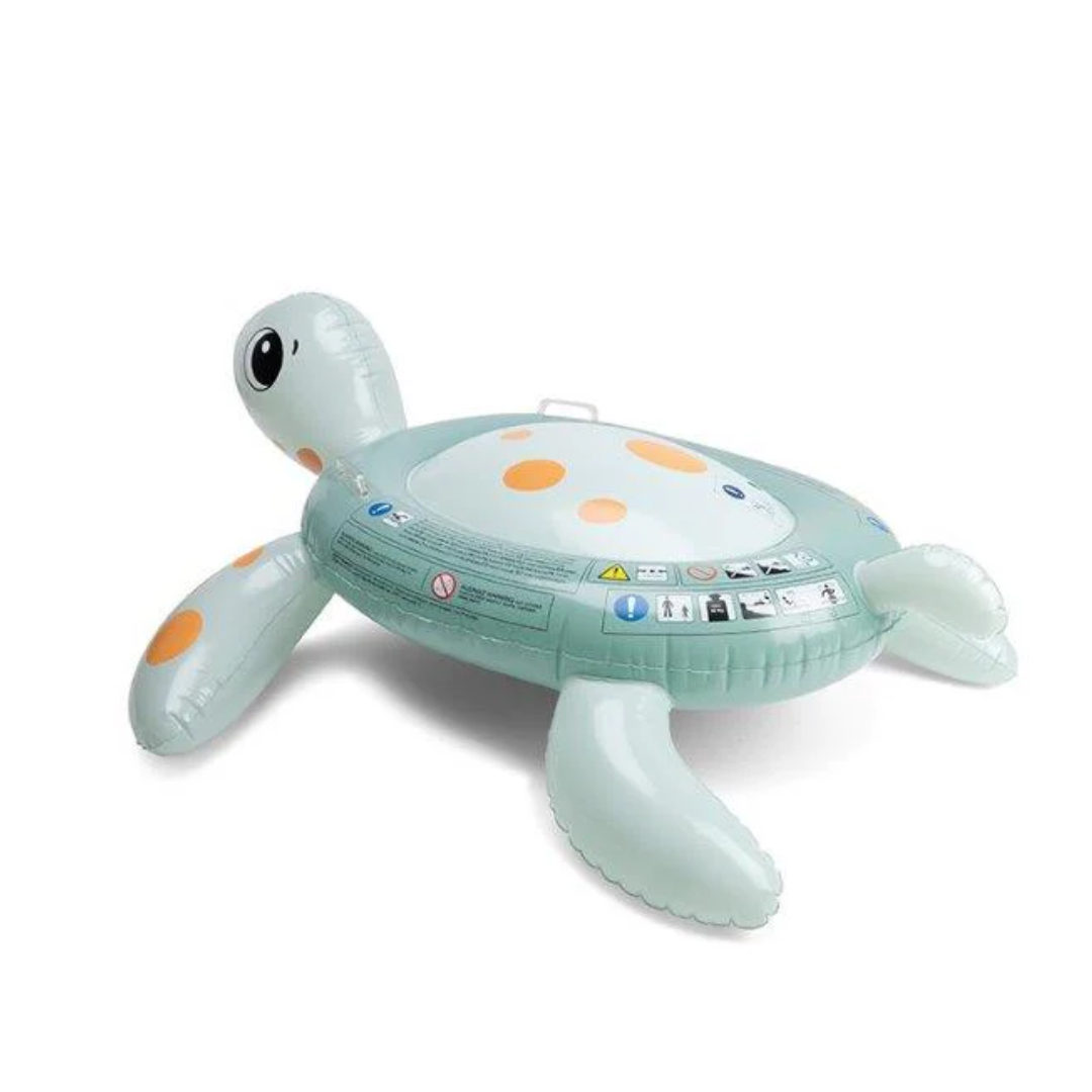 Sized at 142 x 137 x 97 cm, this inflatable Turtle is suitable for ages 6 and up (maximum weight capacity of 80 kg).
